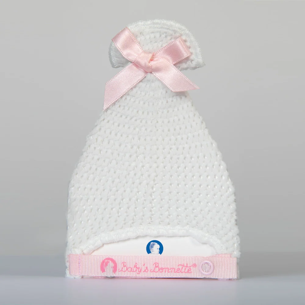 Ultra-stretch knitted bonnet specially designed to prevent ears from folding over and that keeps baby’s ears flat.